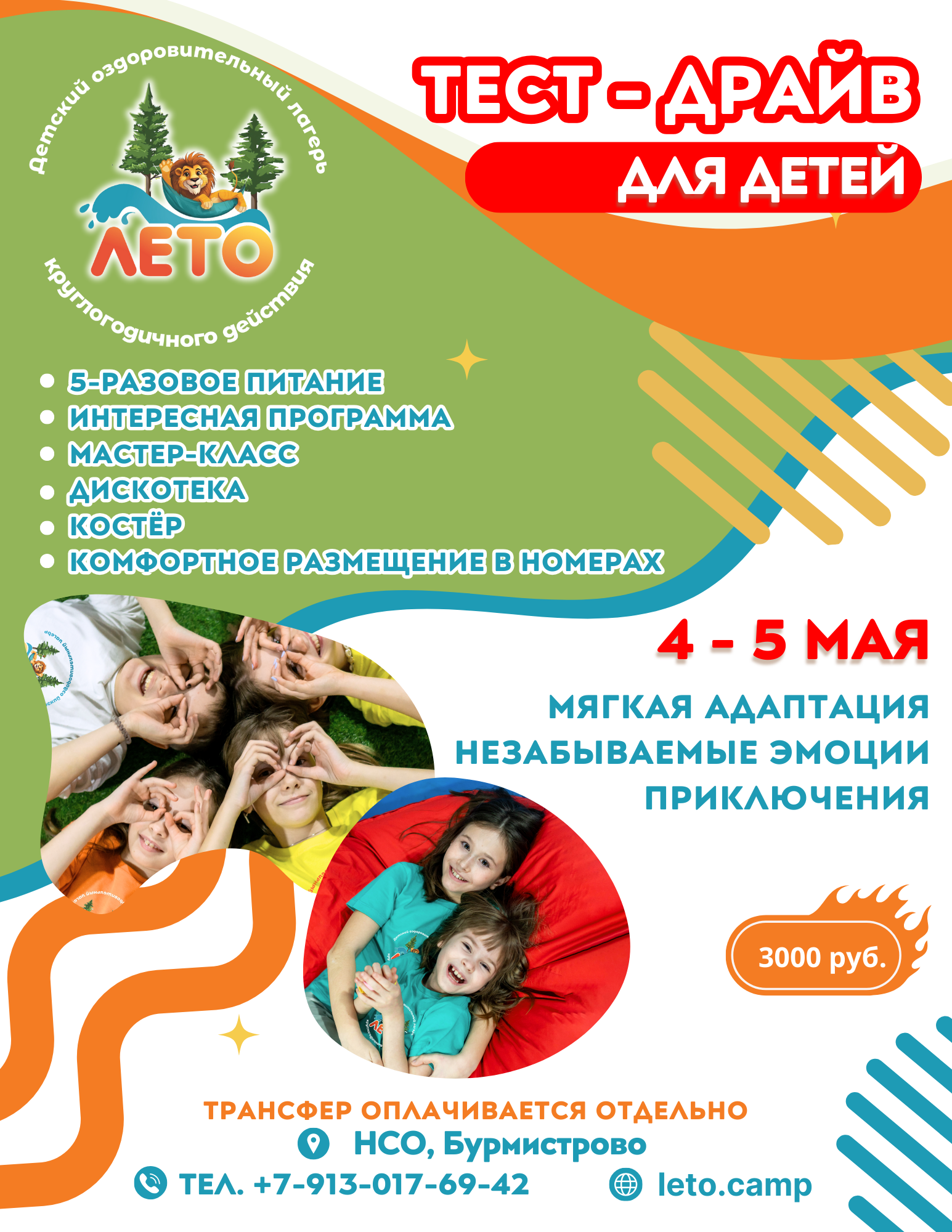 4-5 мая - Тест-драйв для ДЕТЕЙ. Ваш ребенок может попробовать, как это жить в лагере целые сутки! Поехать и увидеть всё своими глазами! Погружение в сюжет заезда.